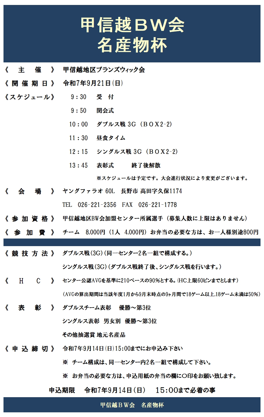 甲信越ブランズウィック会は長野県3センター山梨県2センターで構成されるボウリング事業活性化とボウラー間の親睦や交流を深められる活動をしております