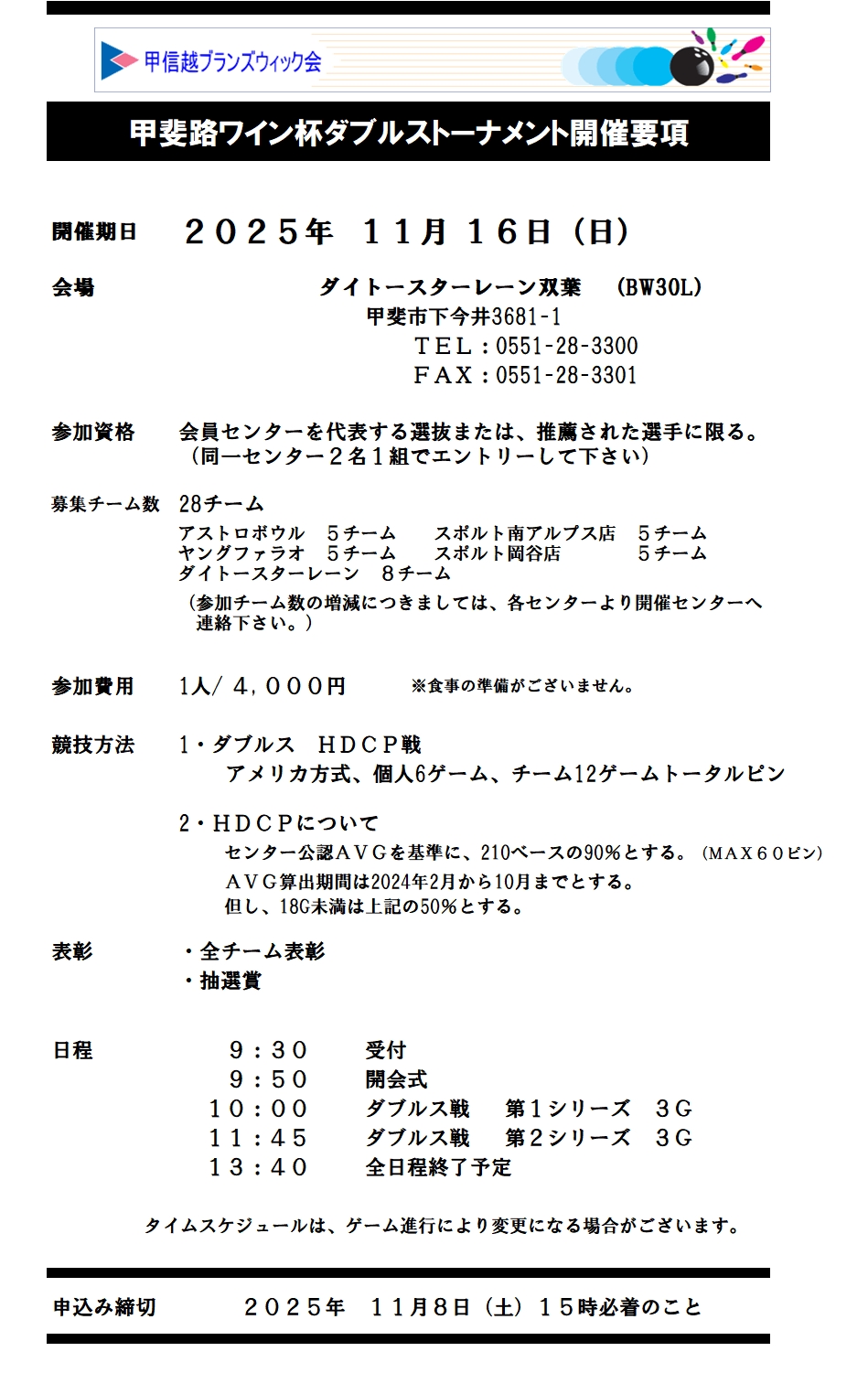 甲信越ブランズウィック会は長野県3センター山梨県2センターで構成されるボウリング事業活性化とボウラー間の親睦や交流を深められる活動をしております