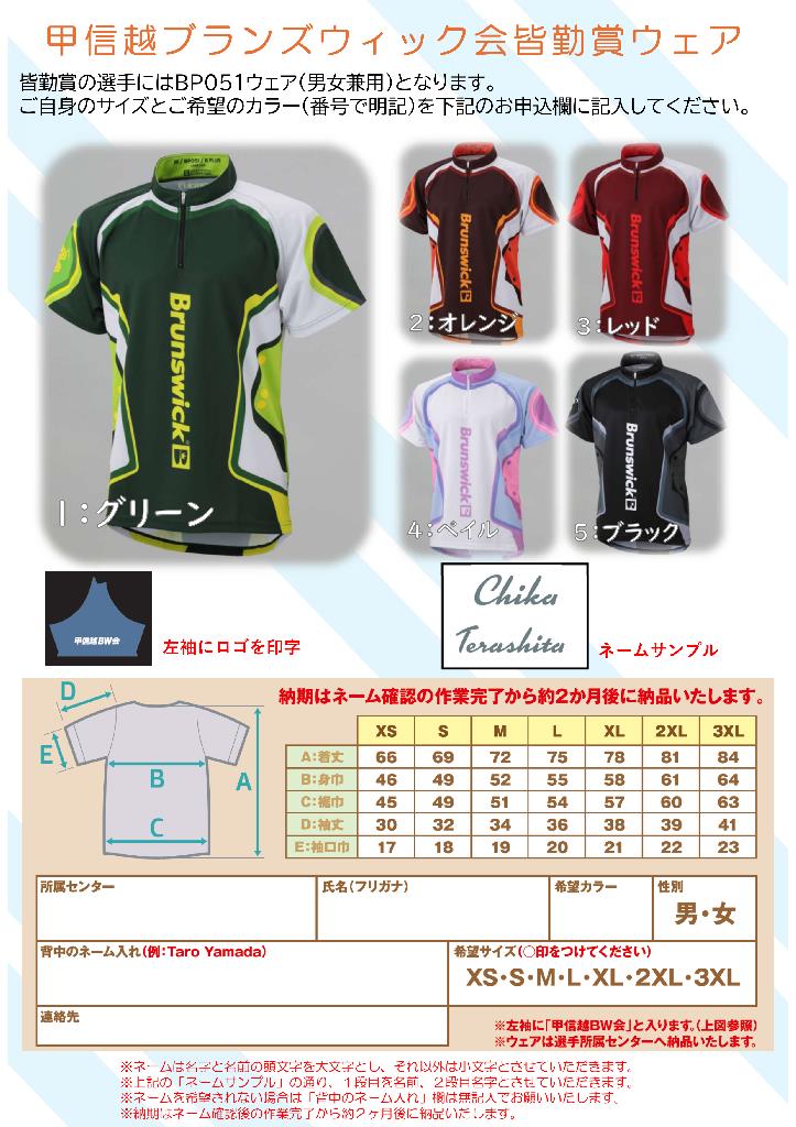 2025年度はウエア背中ネーム入れ及び袖に甲信越BW会ロゴ印字(期間:2025年4月~2026年3月)